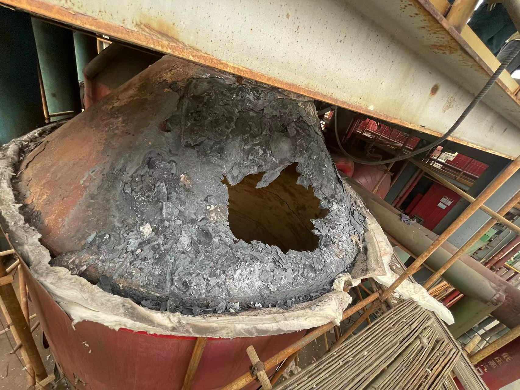 河南某公司氯化法車間有焚燒爐3臺(tái),燃燒器頂置,使用過(guò)程中燃燒器時(shí)常燒壞,焚燒爐頂部燒穿,現(xiàn)決定對(duì)3臺(tái)焚燒爐、燃燒器進(jìn)行改造。